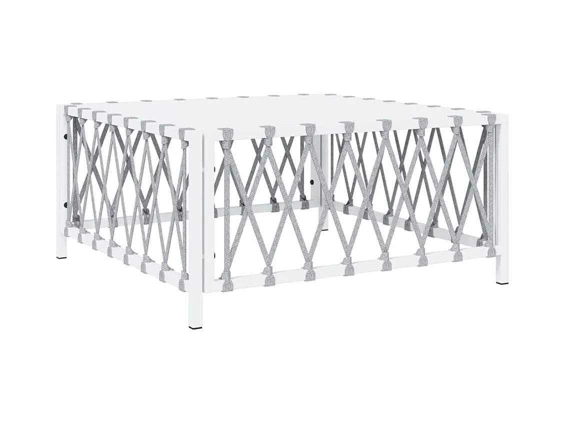 Salon de jardin avec coussins 3 pcs blanc acier