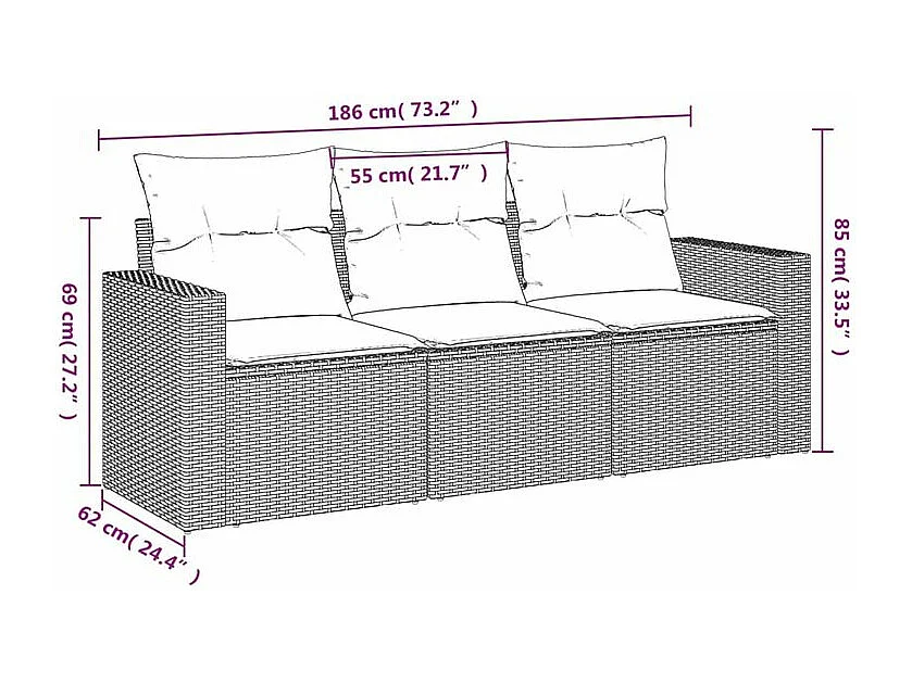 Salon de jardin avec coussins 3 pcs gris clair résine tressée