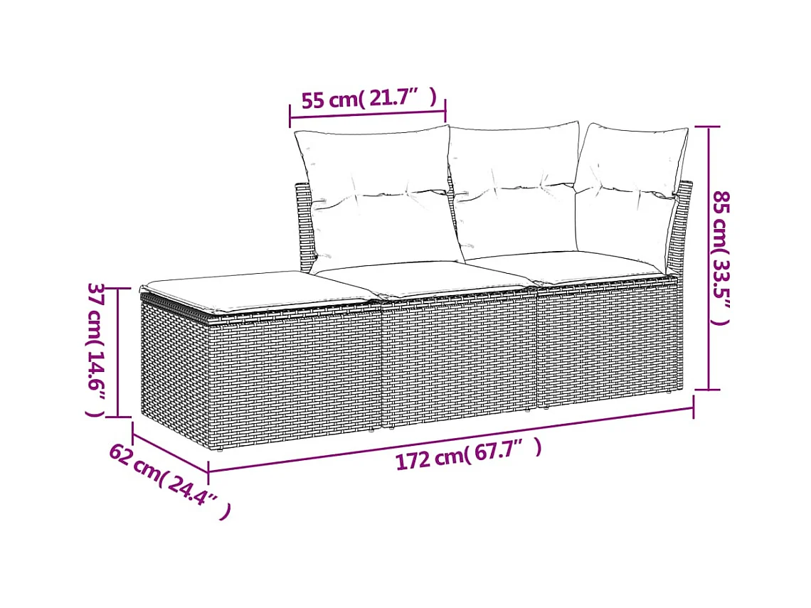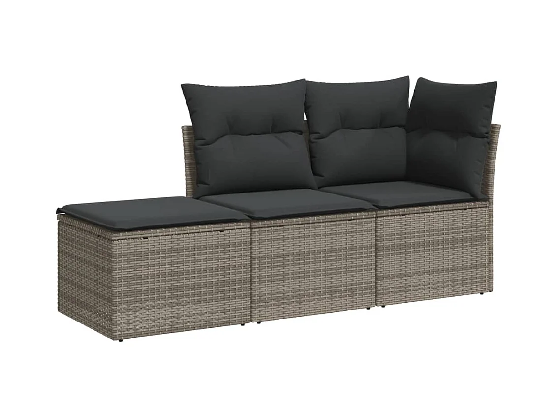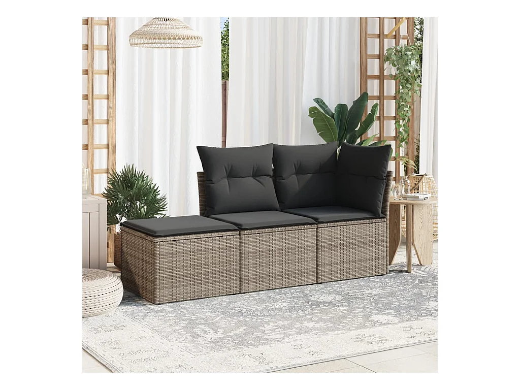 Salon de jardin avec coussins 3 pcs gris résine tressée BE15993