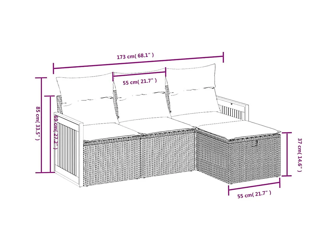 Salon de jardin avec coussins 4 pcs beige résine tressée