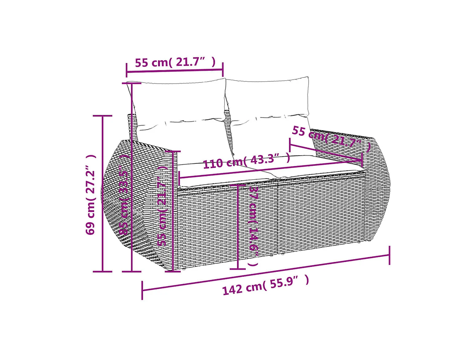 Salon de jardin avec coussins 4 pcs beige résine tressée