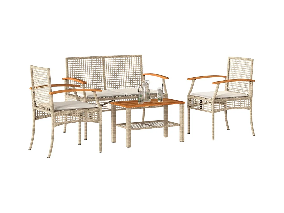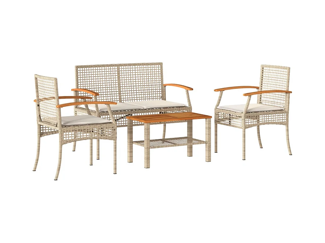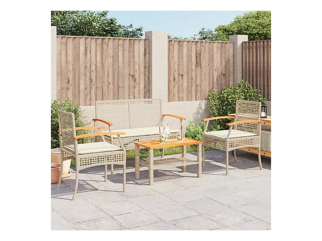 Salon de jardin avec coussins 4 pcs beige résine tressée FR73992