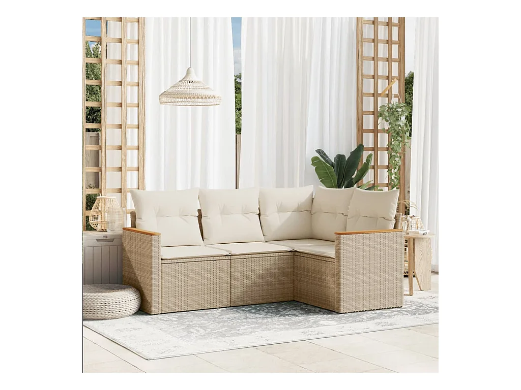 Salon de jardin avec coussins 4 pcs beige résine tressée FR75291