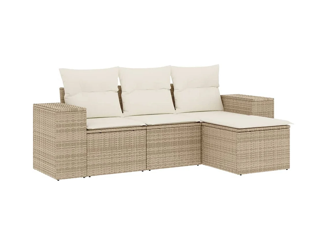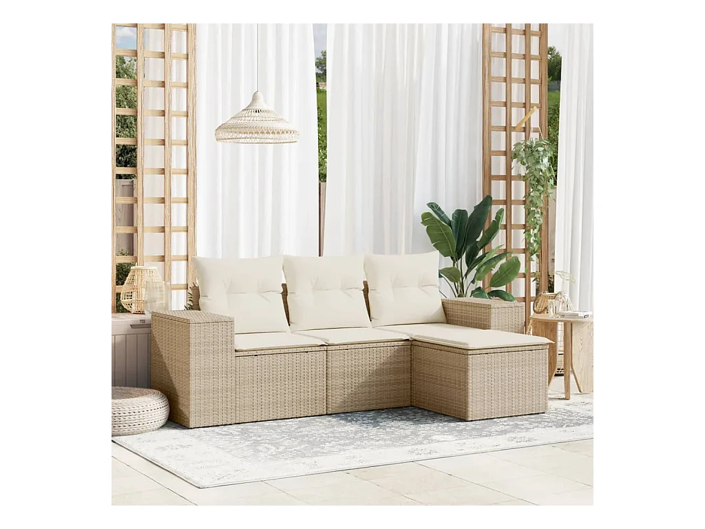 Salon de jardin avec coussins 4 pcs beige résine tressée FR95079