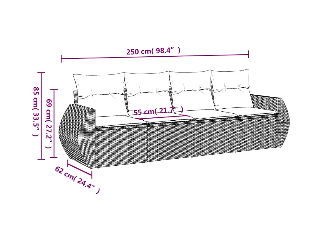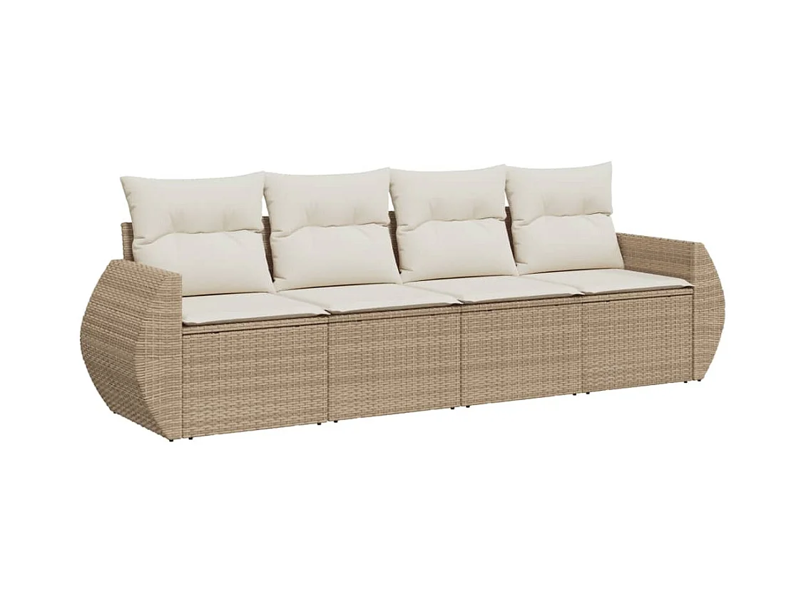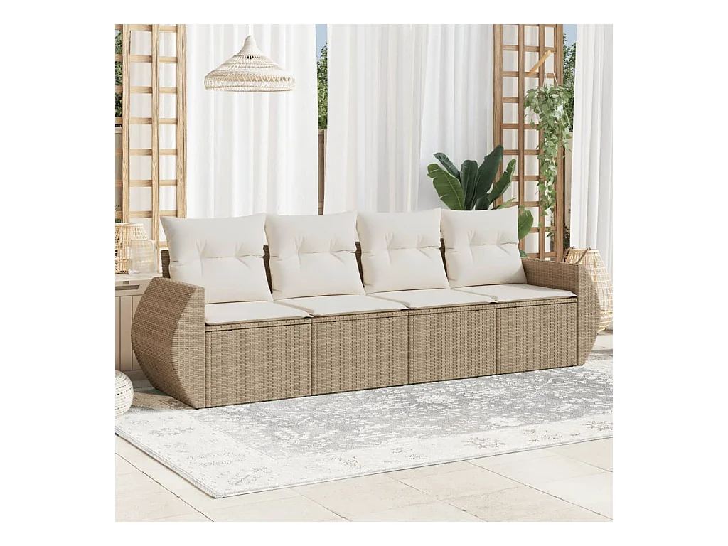 Salon de jardin avec coussins 4 pcs beige résine tressée BE39896