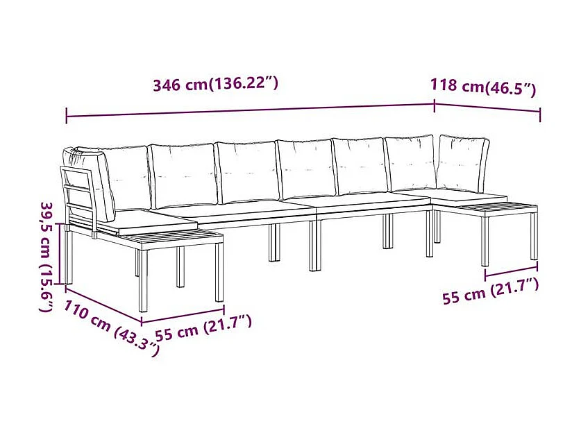Salon de jardin avec coussins 4 pcs noir acier enduit de poudre