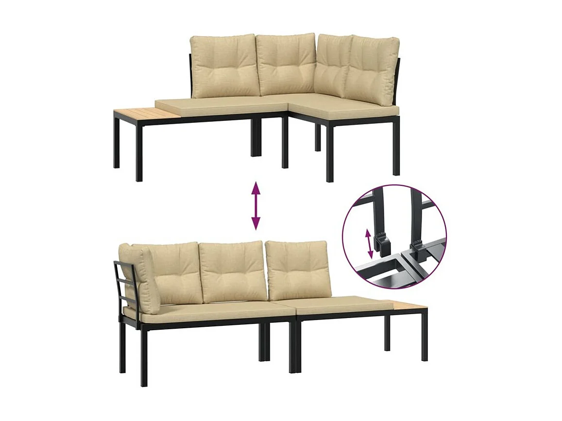 Salon de jardin avec coussins 4 pcs noir acier enduit de poudre