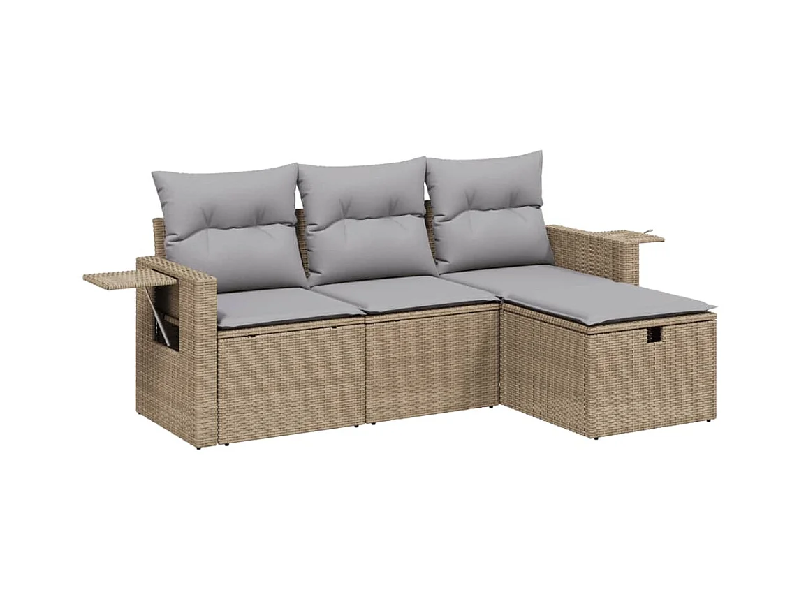 Salon de jardin avec coussins 4pcs mélange beige résine tressée FR10903