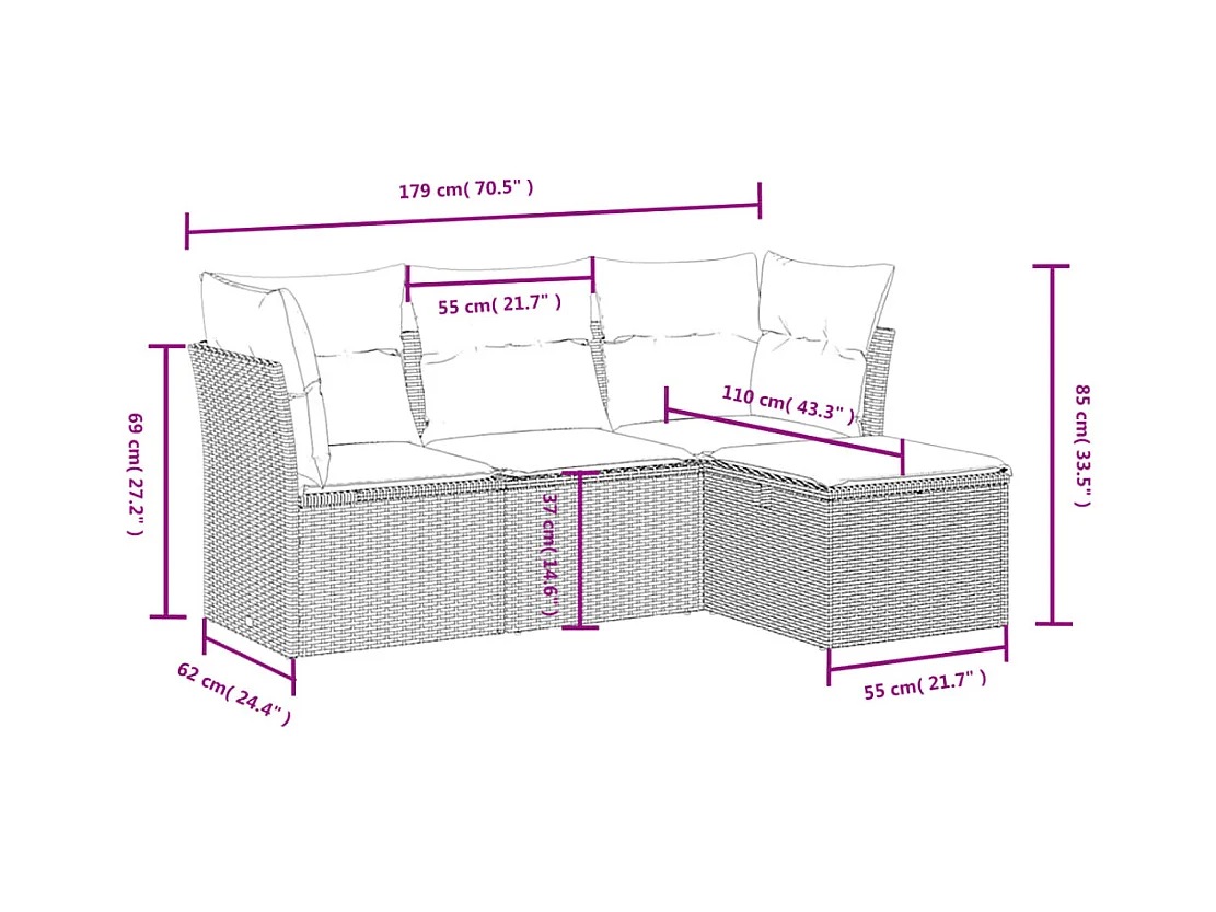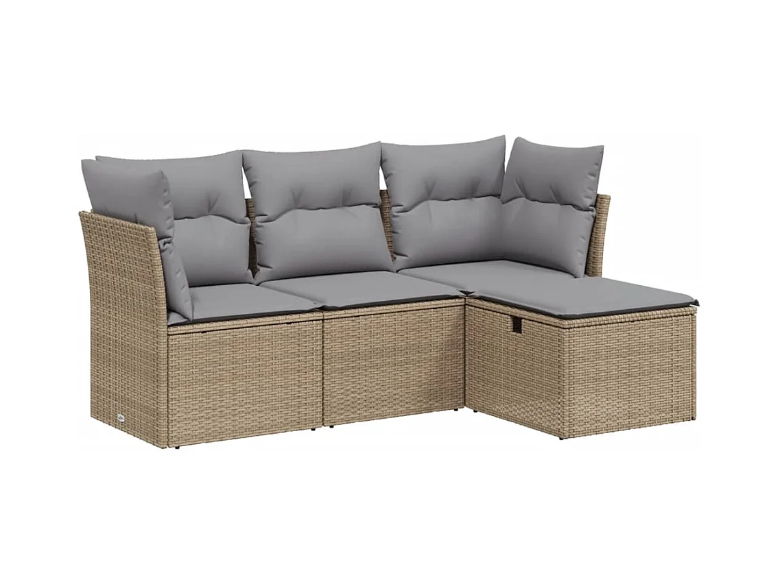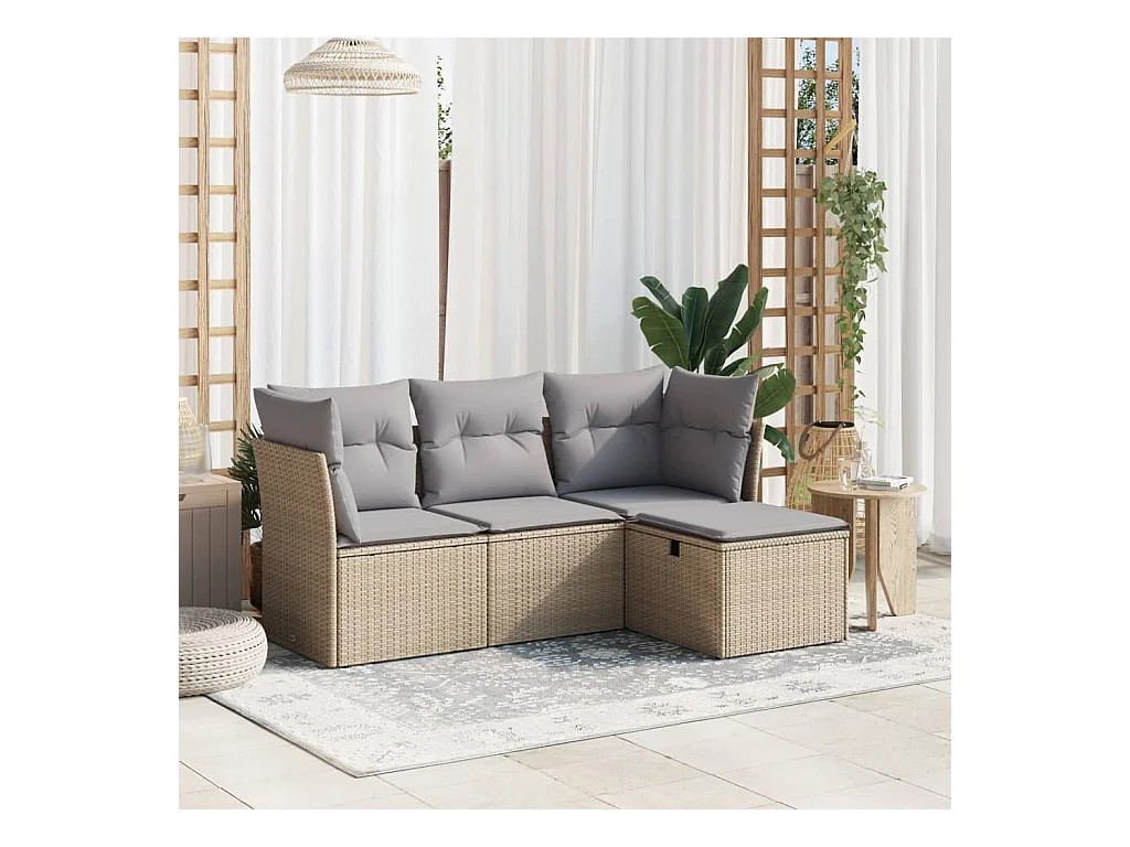 Salon de jardin avec coussins 4pcs mélange beige résine tressée FR51417