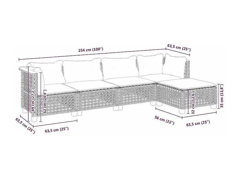 Salon de jardin avec coussins 5 pcs beige résine tressée