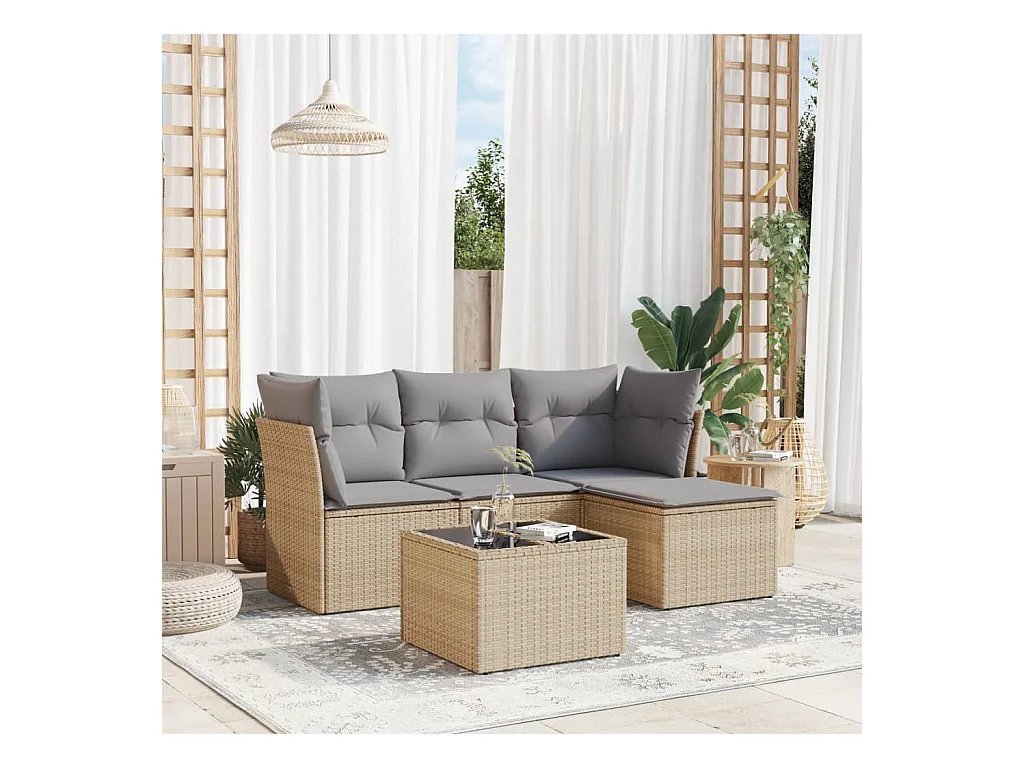 Salon de jardin avec coussins 5 pcs beige résine tressée