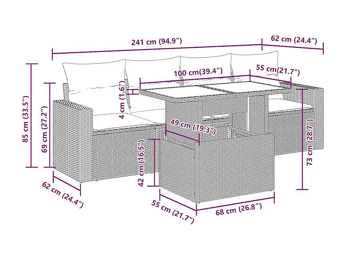 Salon de jardin avec coussins 5 pcs beige résine tressée