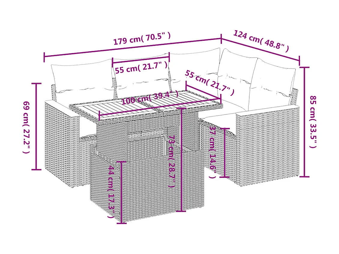 Salon de jardin avec coussins 5 pcs beige résine tressée