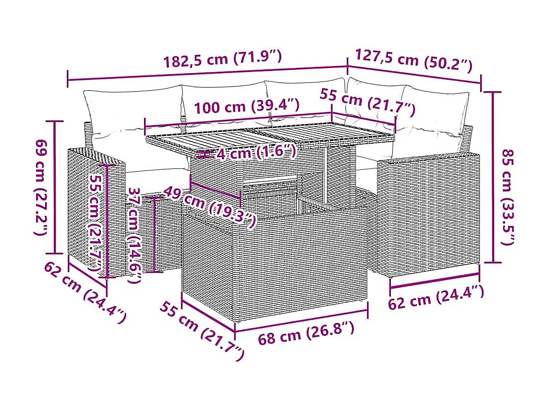 Salon de jardin avec coussins 5 pcs beige résine tressée