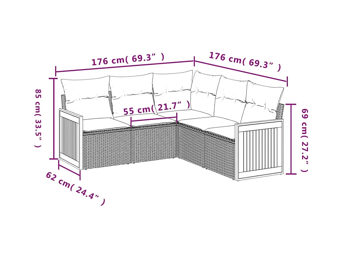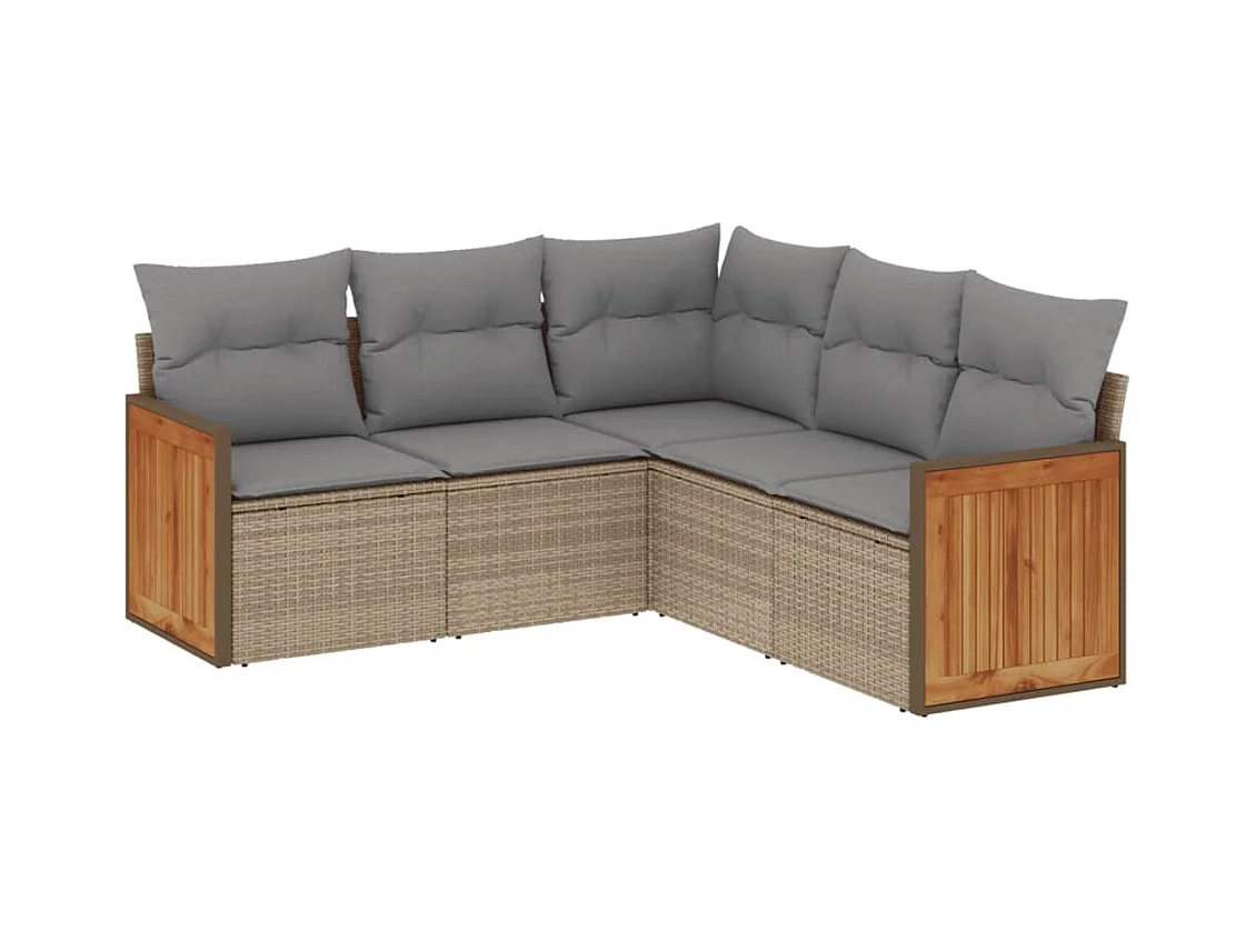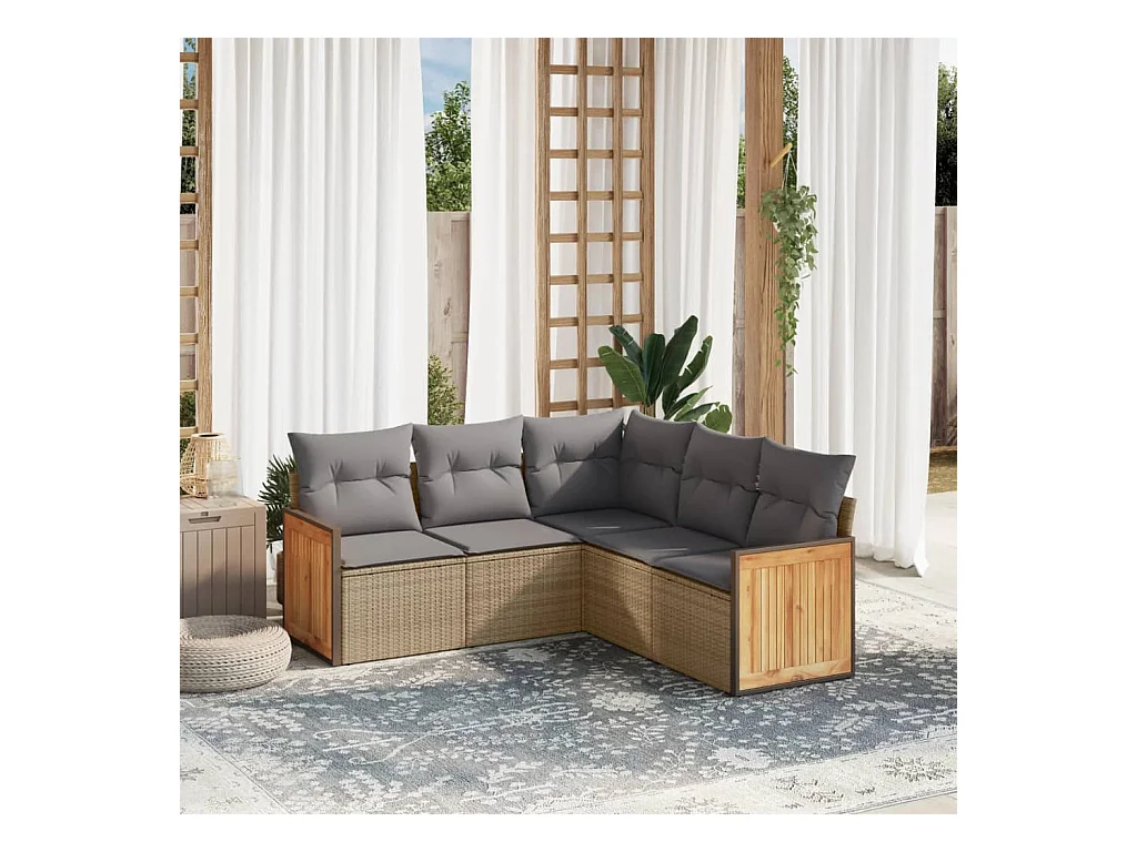Salon de jardin avec coussins 5 pcs beige résine tressée FR60500
