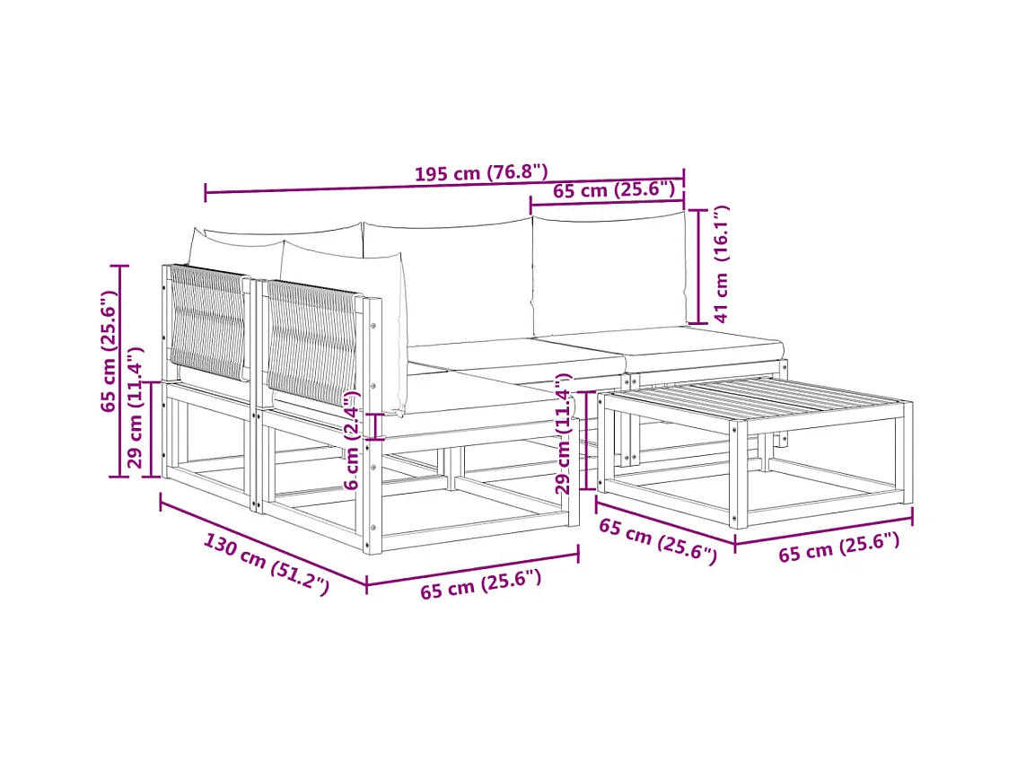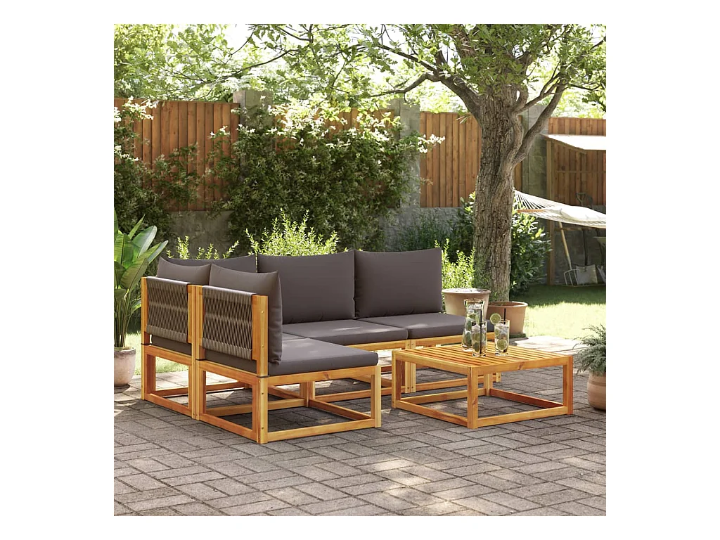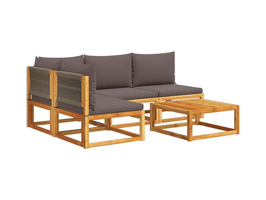 Ensemble de canapés de jardin 5 pièces avec coussins en bois d'acacia et corde