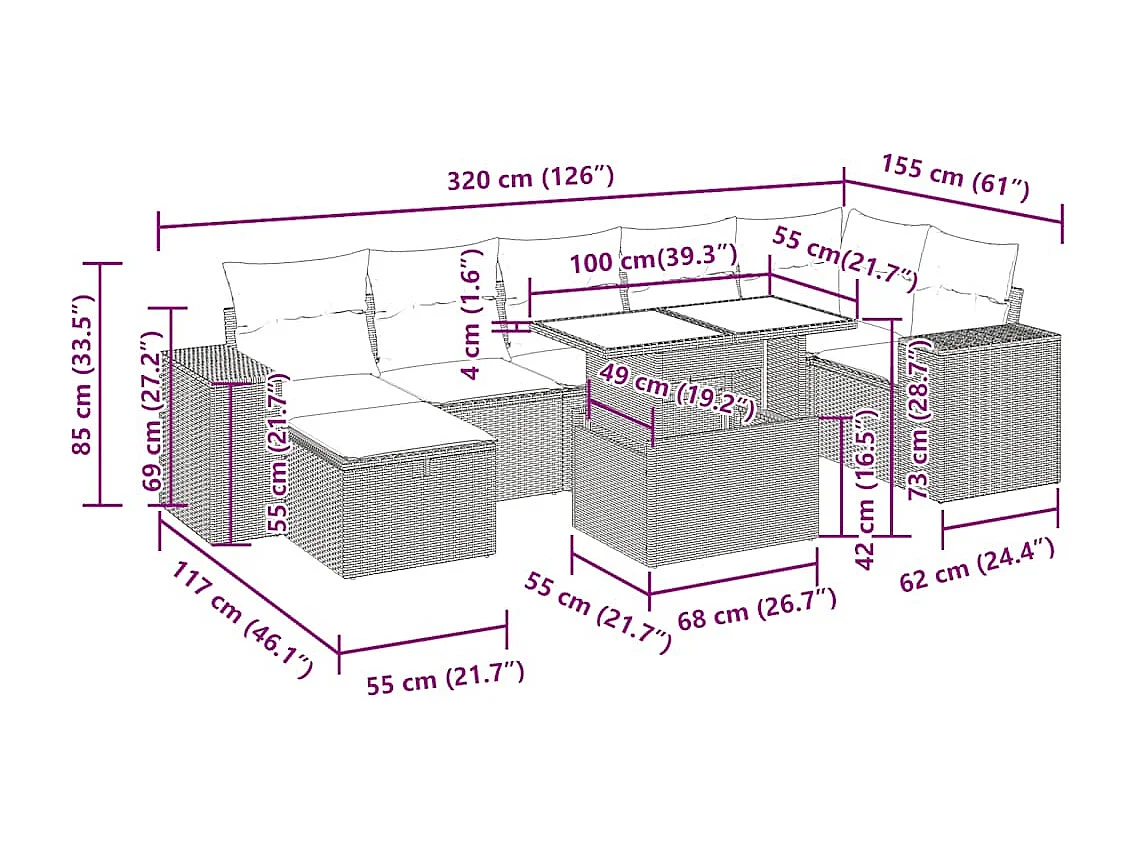 Salon de jardin avec coussins 5 pcs marron résine tressée