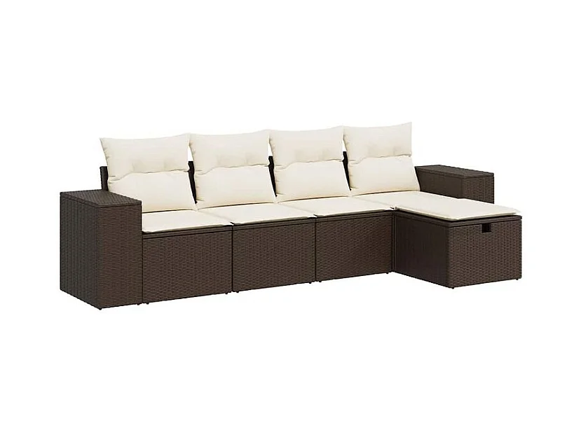 Salon de jardin avec coussins 5 pcs marron résine tressée