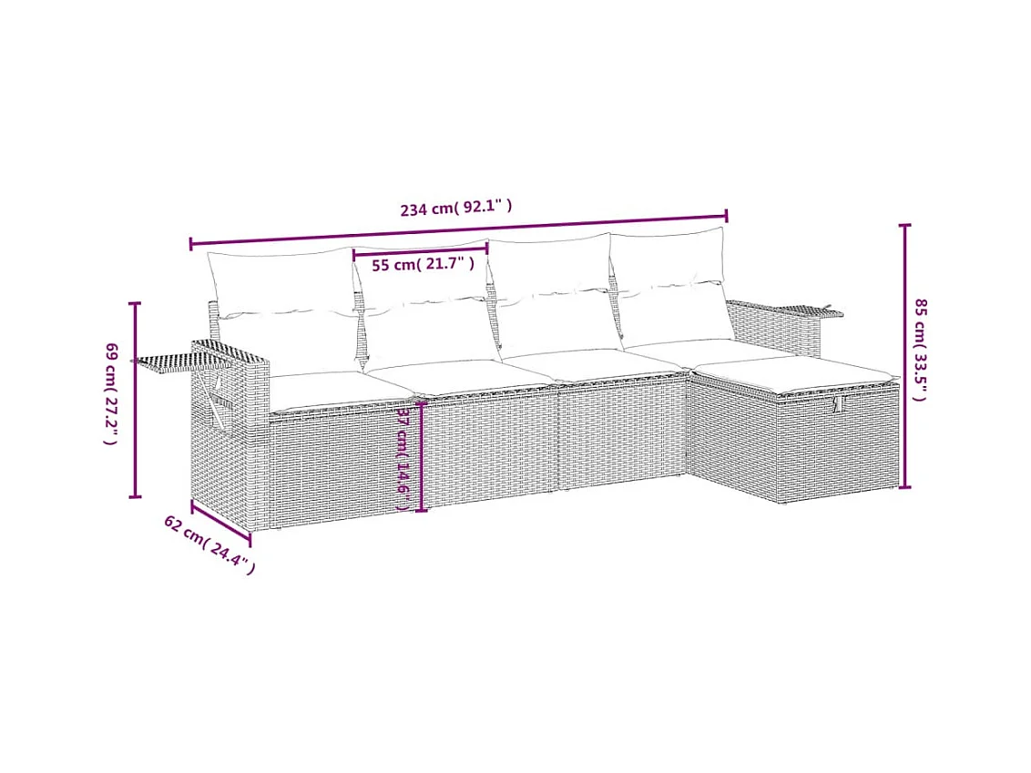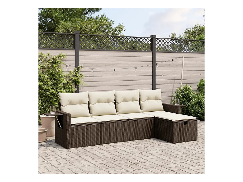 Salon de jardin avec coussins 5 pcs marron résine tressée FR36520