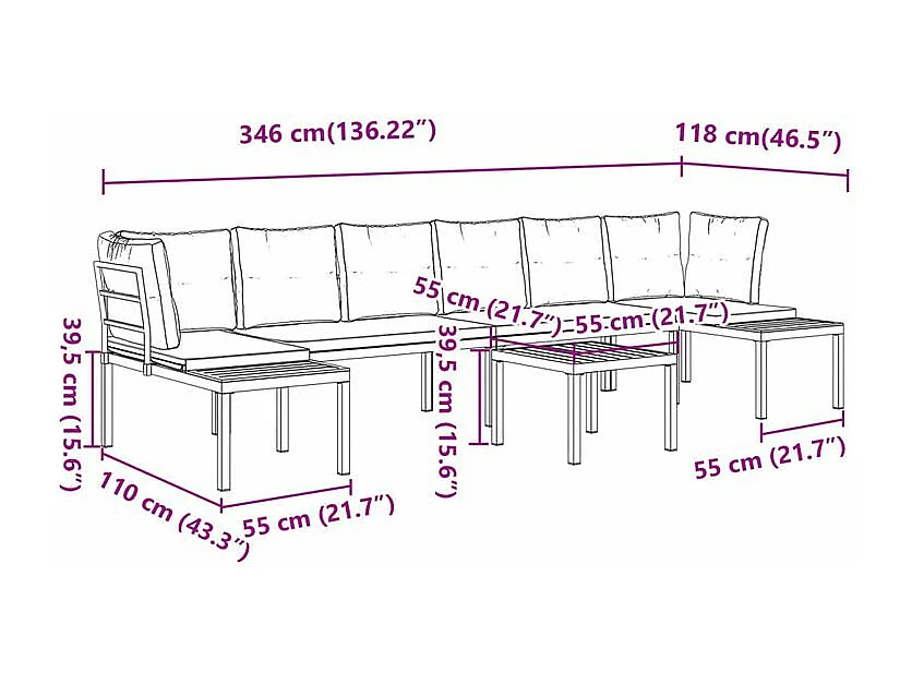 Salon de jardin avec coussins 5 pcs noir acier enduit de poudre