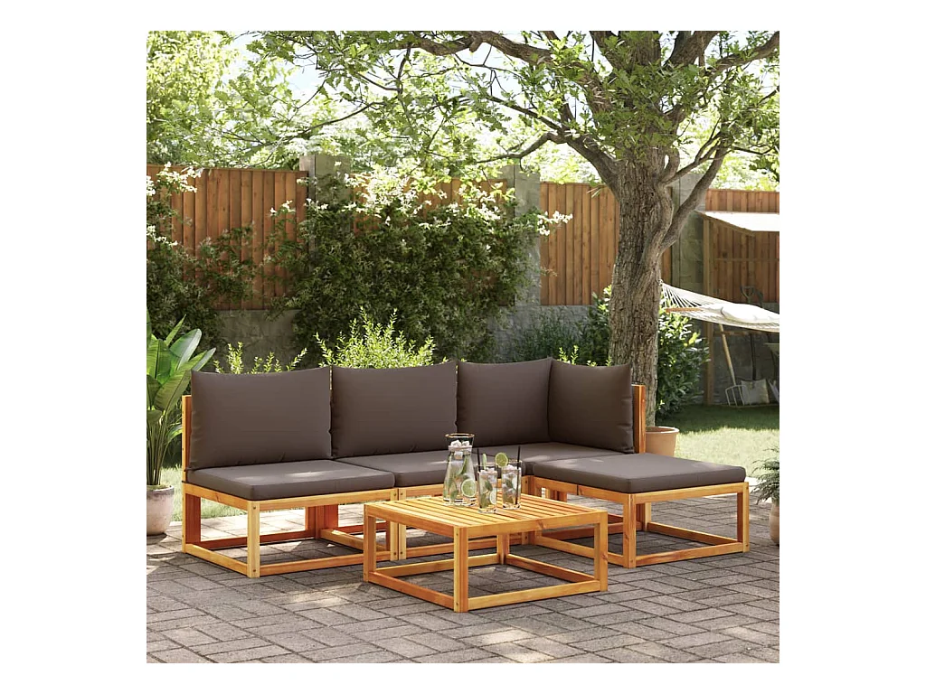 Salon de jardin avec coussins 5 pièces Bois d'acacia solide