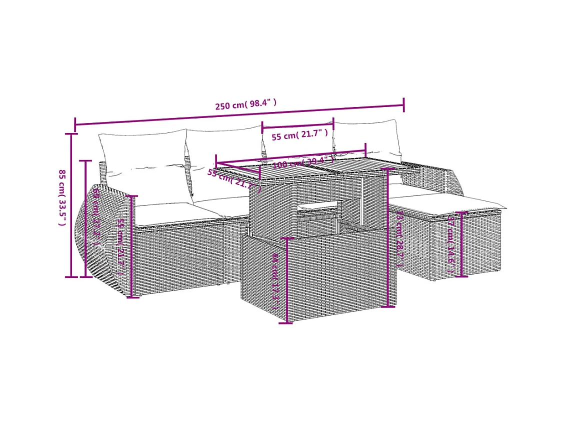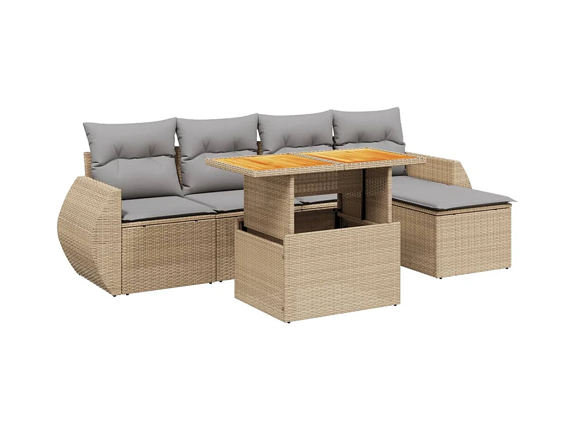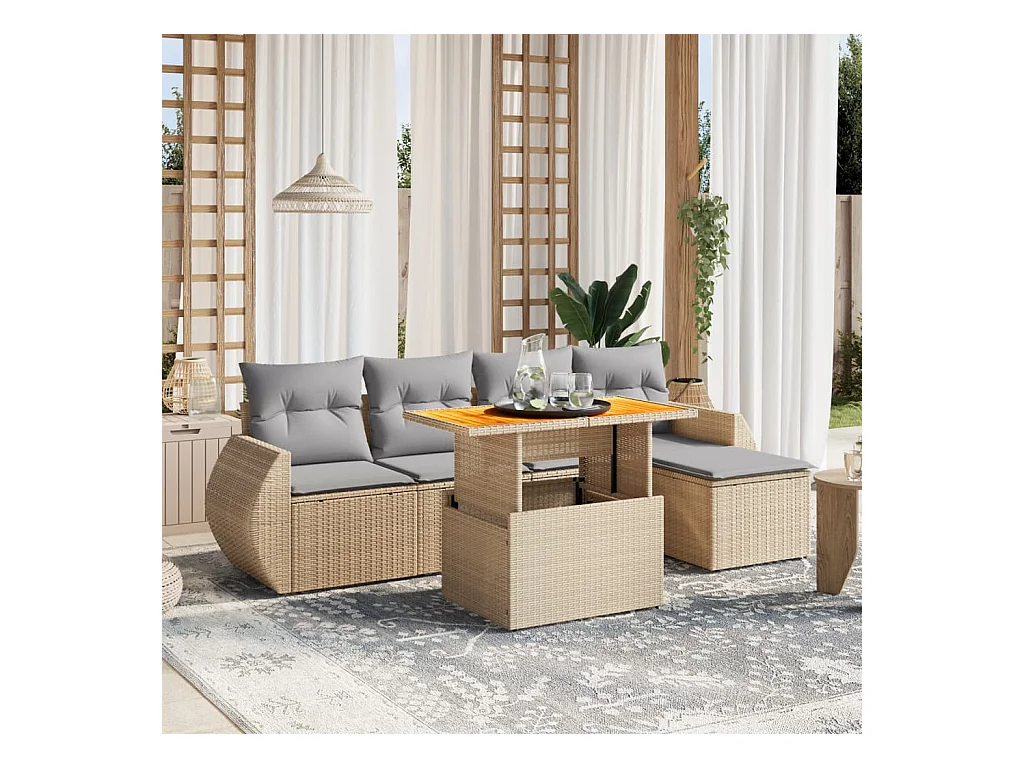 Salon de jardin avec coussins 6 pcs beige résine tressée