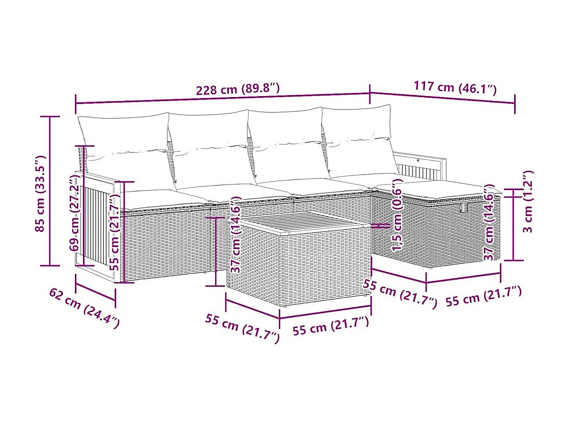 Salon de jardin avec coussins 6 pcs beige résine tressée