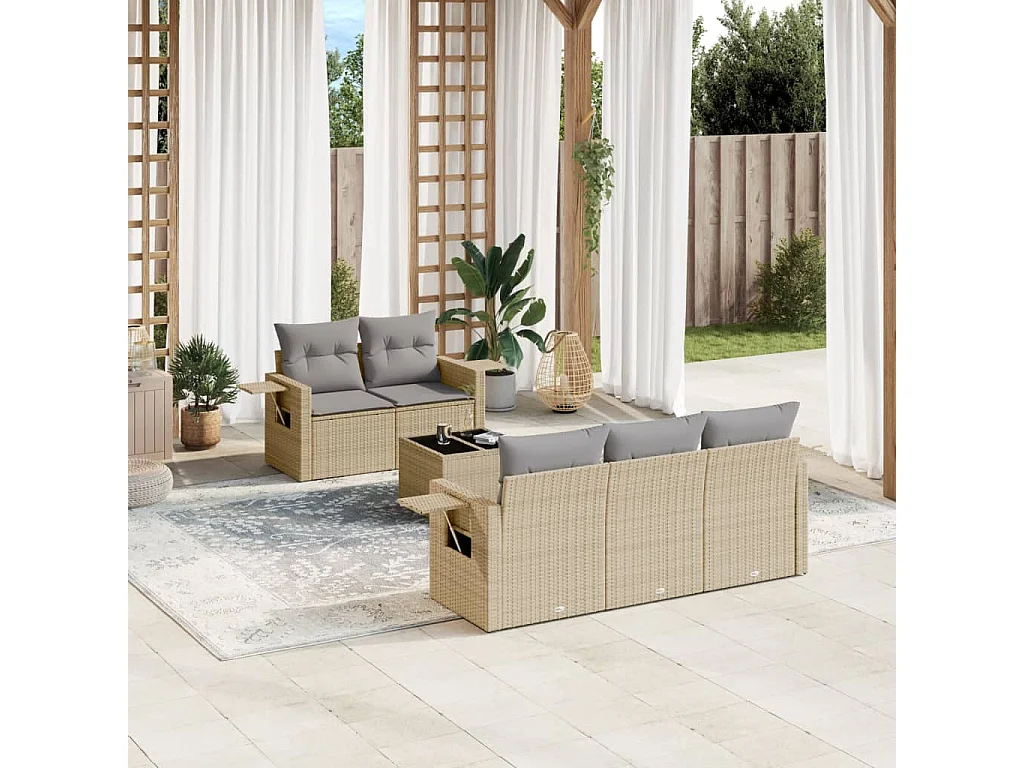 Salon de jardin avec coussins 6 pcs beige résine tressée