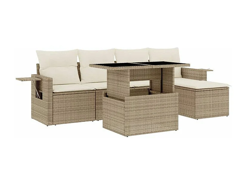 Salon de jardin avec coussins 6 pcs beige résine tressée