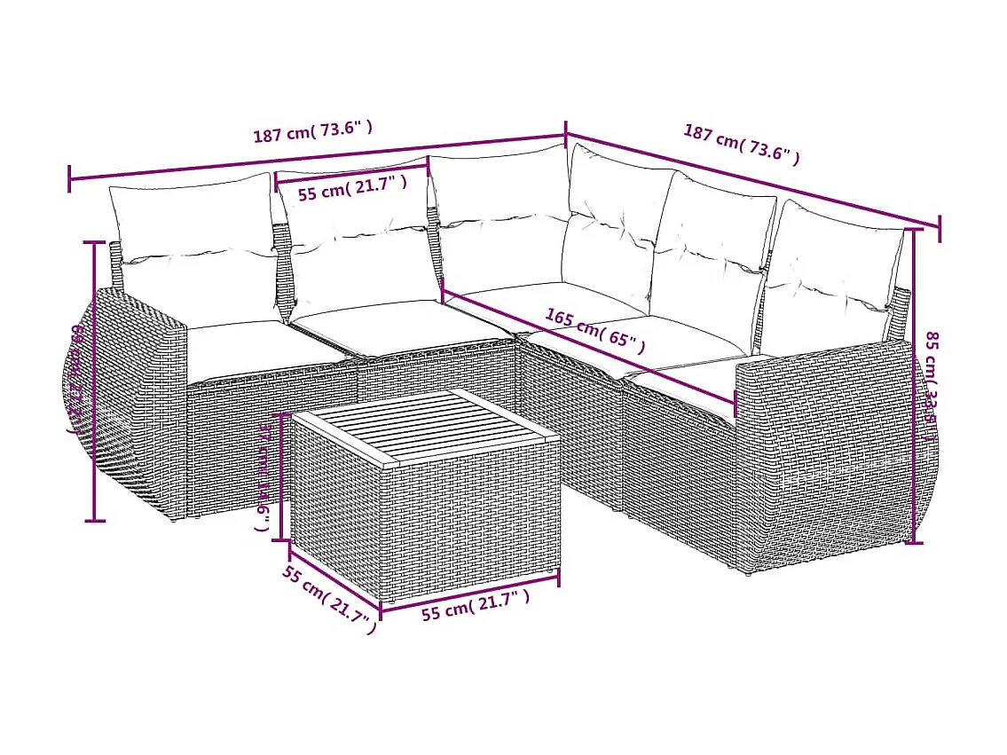 Salon de jardin avec coussins 6 pcs beige résine tressée