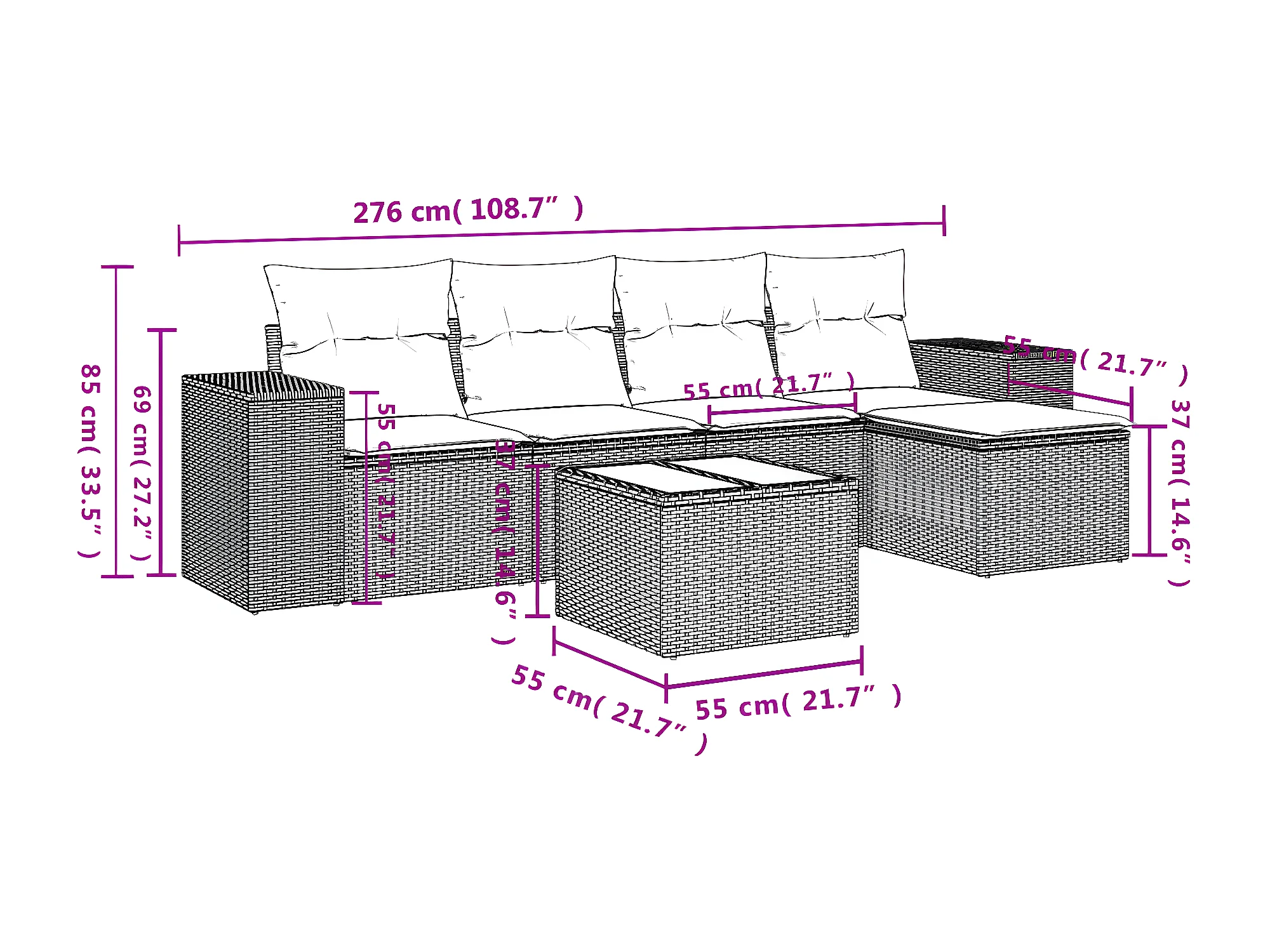 Salon de jardin avec coussins 6 pcs beige résine tressée