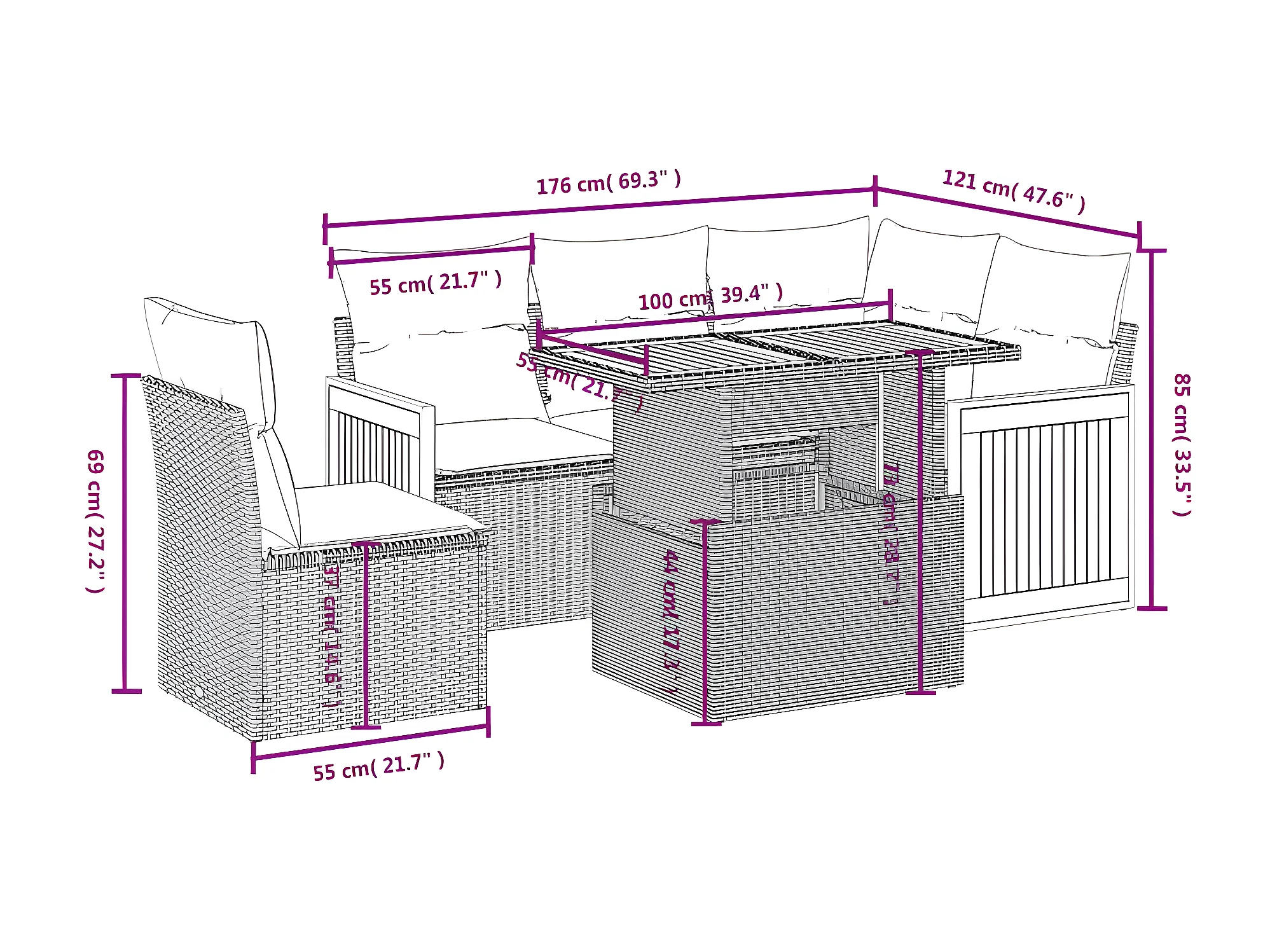 Salon de jardin avec coussins 6 pcs beige résine tressée