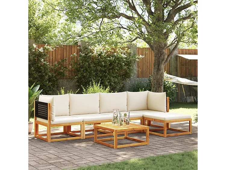 Salon de jardin avec coussins 6 pcs bois d'acacia solide