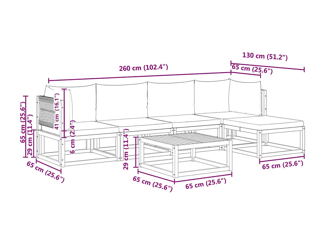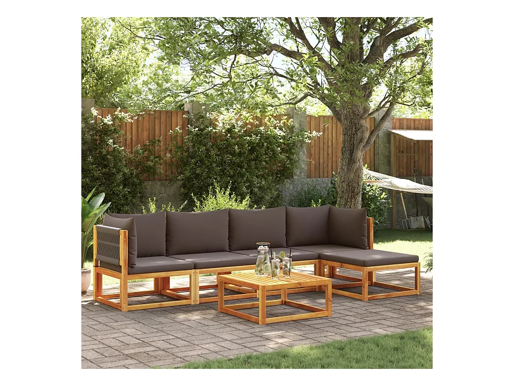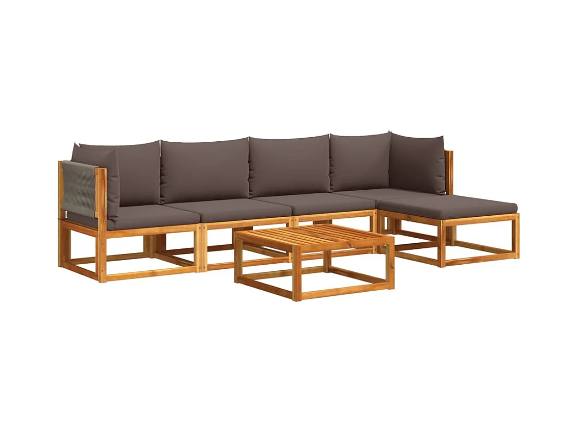 Ensemble de canapés de jardin 6 pièces avec coussins en bois d'acacia et corde