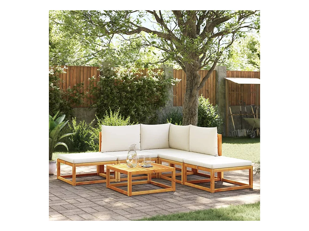 Ensemble de canapés de jardin 6 pièces avec coussins en bois d'acacia et corde