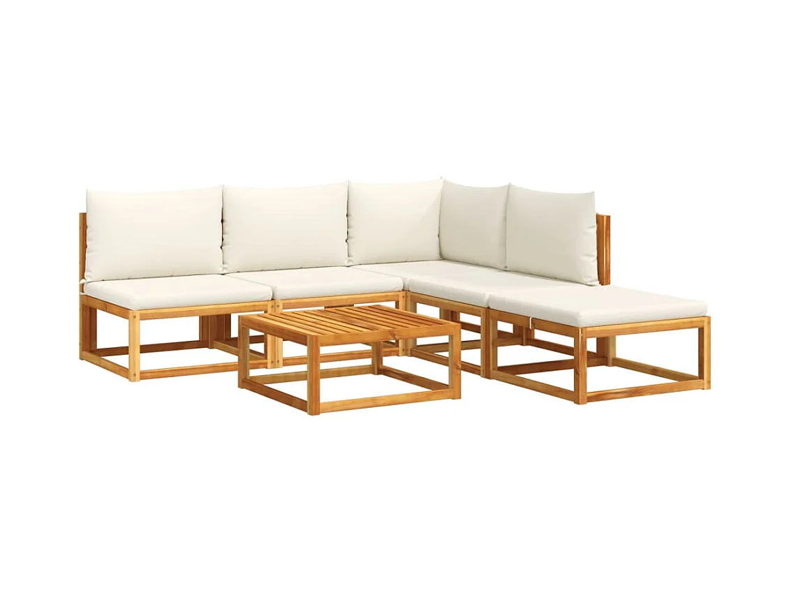 Ensemble de canapés de jardin 6 pièces avec coussins en bois d'acacia et corde