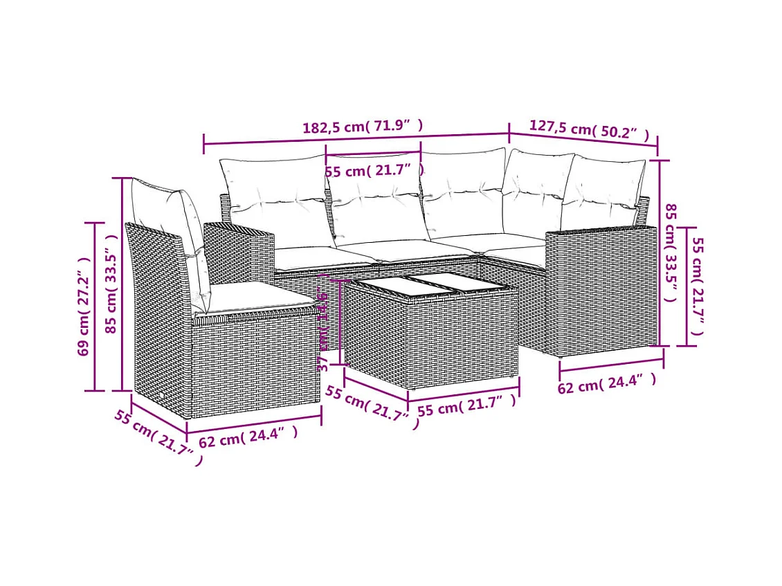 Salon de jardin avec coussins 6 pcs marron résine tressée