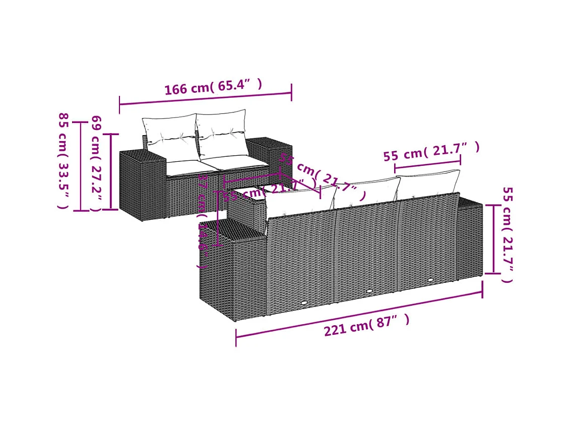Salon de jardin avec coussins 6 pcs marron résine tressée