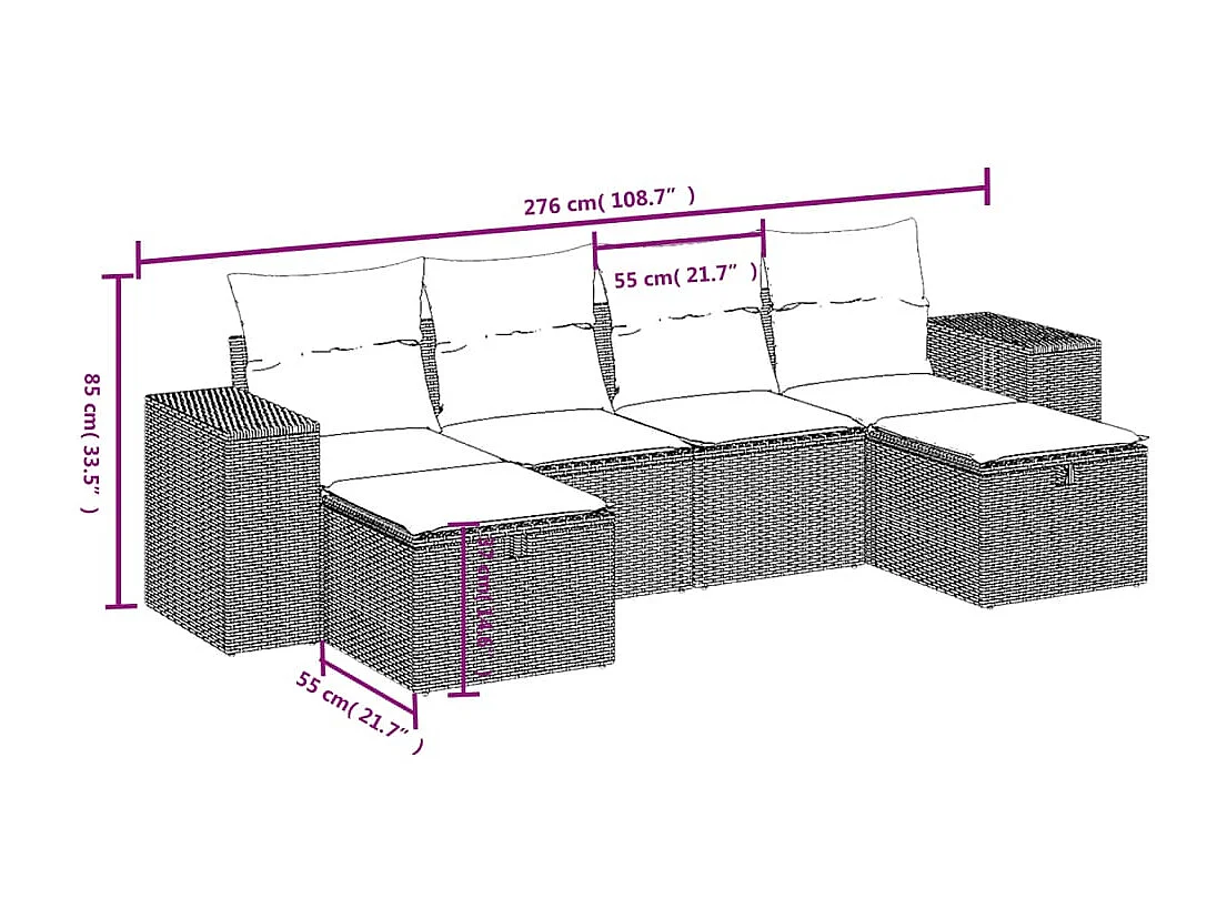Salon de jardin avec coussins 6 pcs marron résine tressée