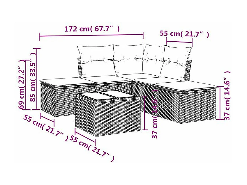 Salon de jardin avec coussins 6 pcs marron résine tressée