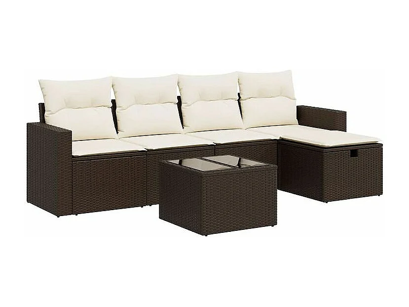 Salon de jardin avec coussins 6 pcs marron résine tressée