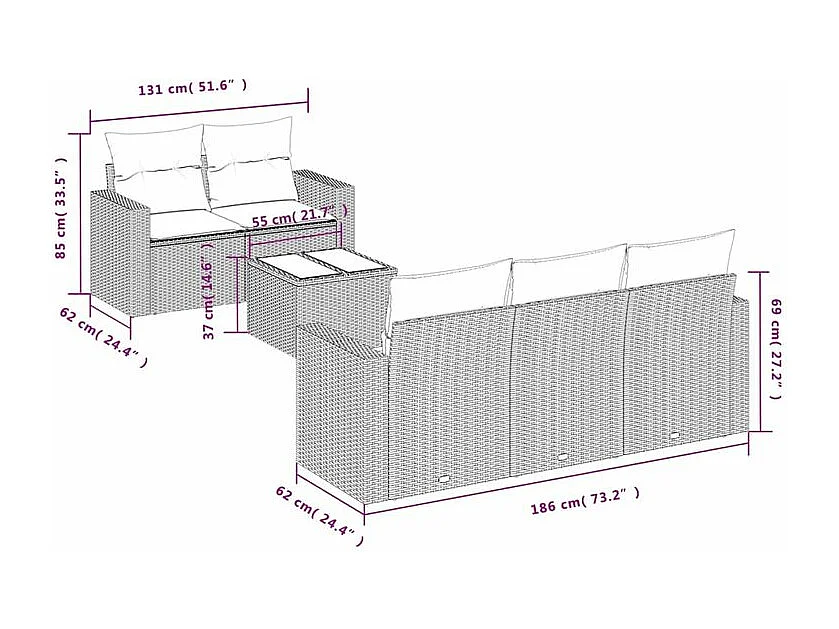 Salon de jardin avec coussins 6 pcs marron résine tressée