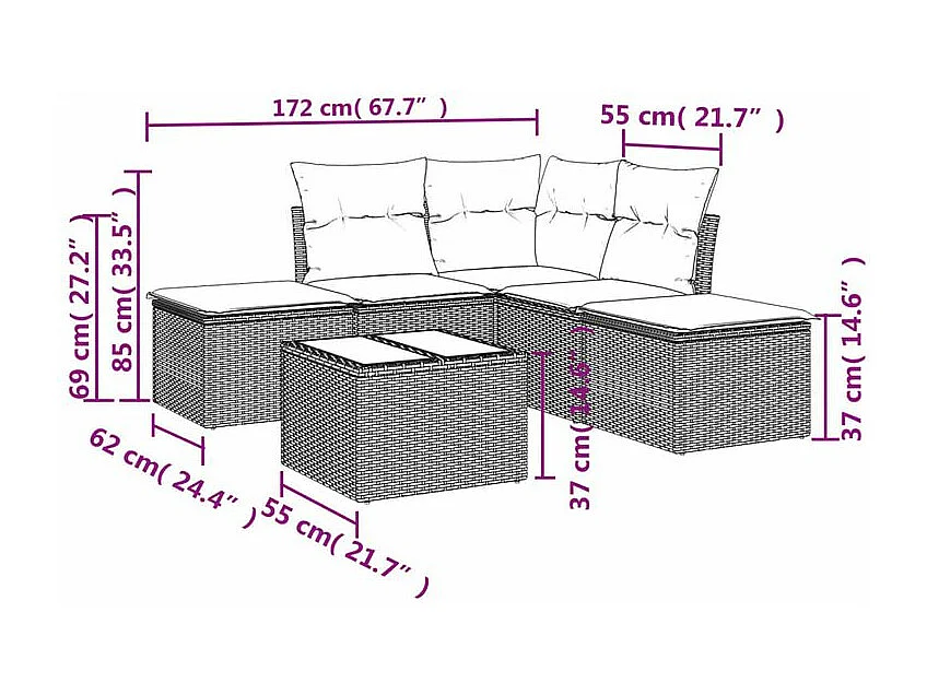 Salon de jardin avec coussins 6 pcs marron résine tressée