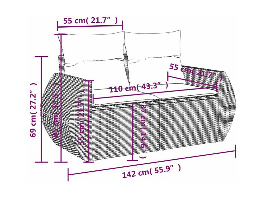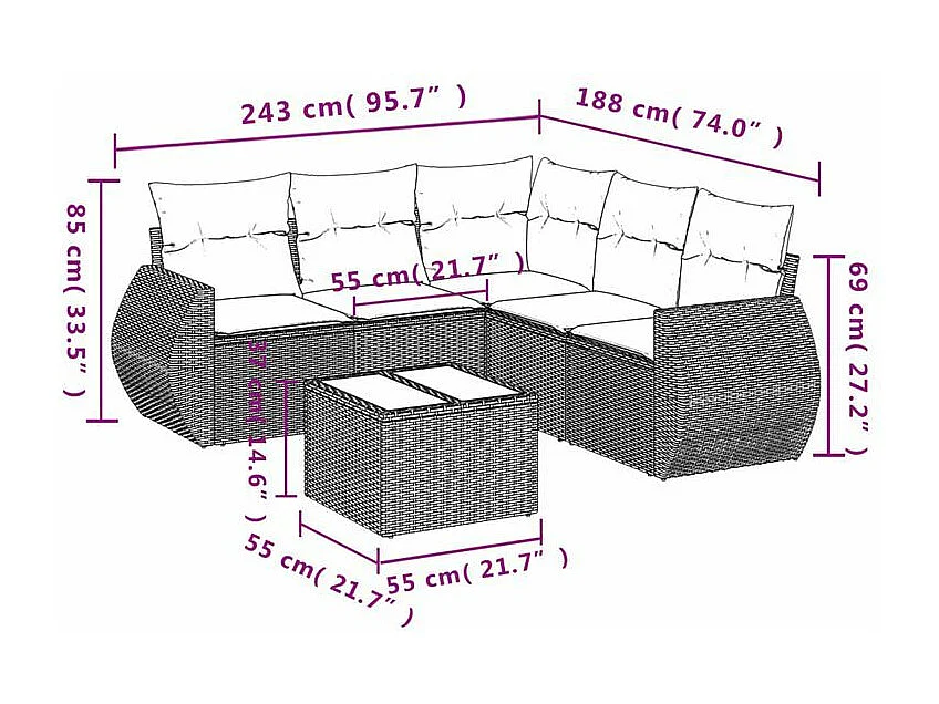Salon de jardin avec coussins 6 pcs marron résine tressée