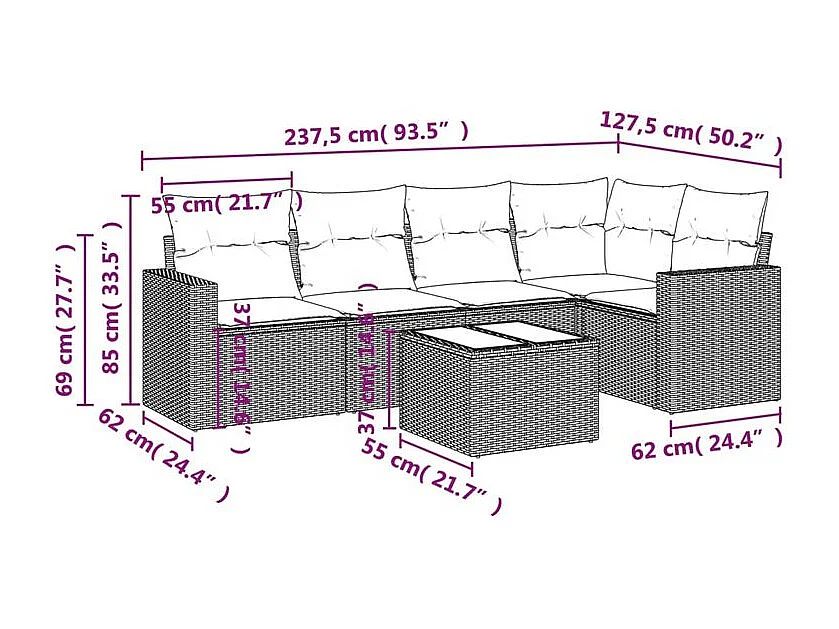 Salon de jardin avec coussins 6 pcs marron résine tressée