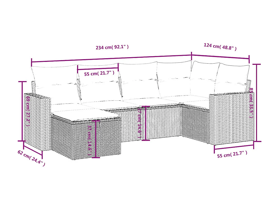 Salon de jardin avec coussins 6 pcs marron résine tressée