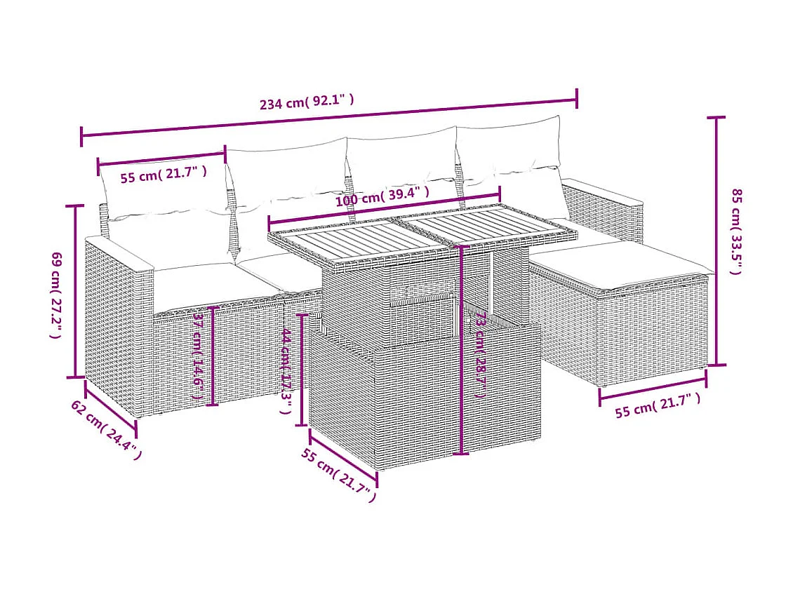 Salon de jardin avec coussins 6 pièces beige résine tressée