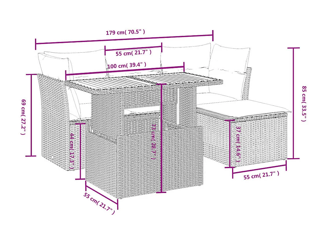 Salon de jardin avec coussins 6 pièces beige résine tressée