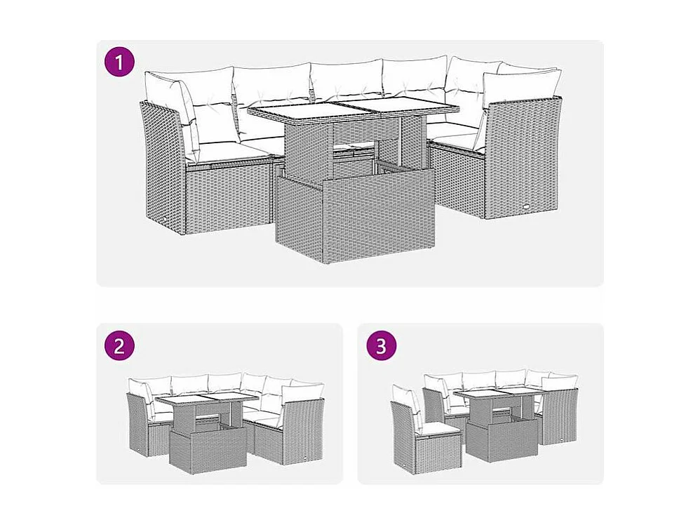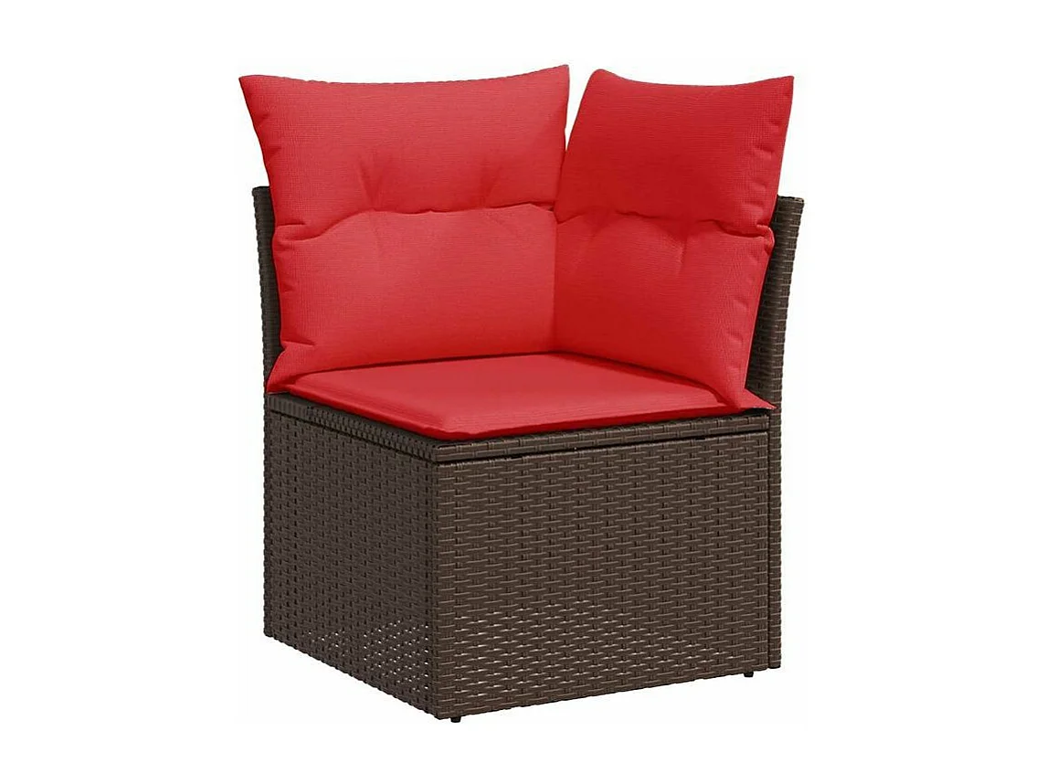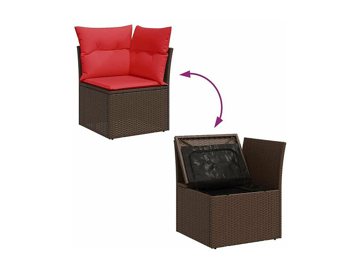 Salon de jardin avec coussins 6pcs marron résine tressée acacia