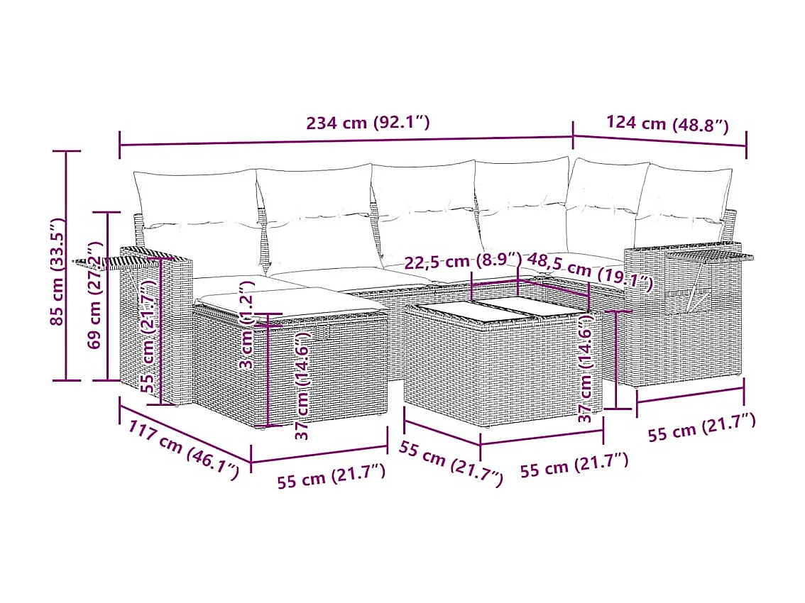 Salon de jardin avec coussins 7 pcs beige résine tressée
